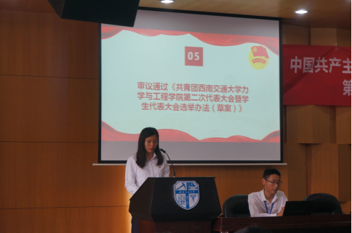 5月26日下午14:00,共青团太阳集团2138力学与工程学院第二次代表大会暨学生代表大会在图书馆二号报告厅召开。本次大会由四个代表团组成,应到代表101人,因病、因事请假9人,实到92人。校团委副书记王蔚,力学学院党委书记栗民,党委副书记、学生工作组组长孔祥彬,工会主席刘菲,校学生会副主席杜明阳,力学学院团委书记杨婧,副书记张英蓉、胡持,各兄弟院系的团委老师们,以及92名团员代表出席了大会开幕式。本次大会开幕式由力学学院团委书记杨婧主持。