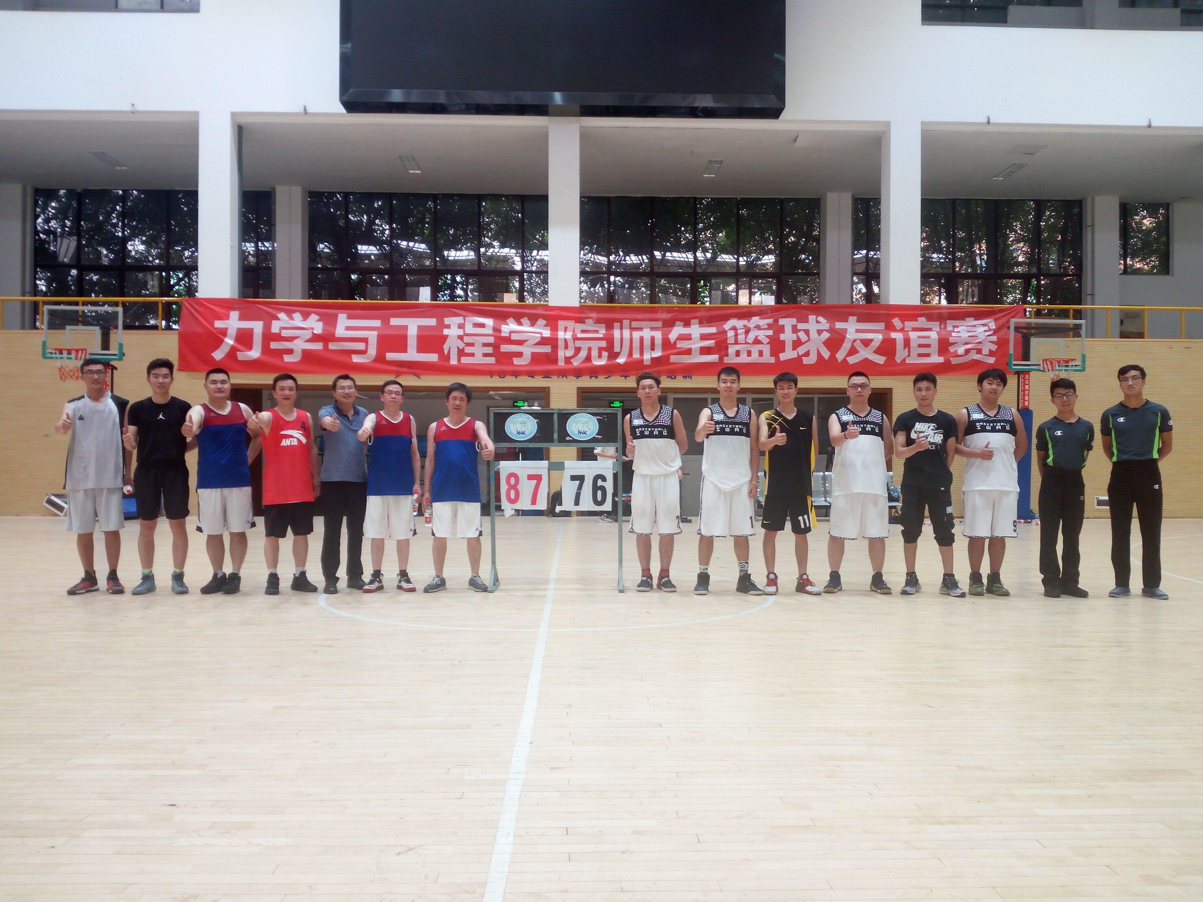 为丰富毕业季学生课外活动,增进师生情感交流,力学与工程学院毕业季师生篮球友谊赛于6月15日下午4点在九里校区詹天佑体育馆顺利举行。由康国政、朱志武、孔祥彬、范晨光、于超等老师组成的教师队对阵由殷喆、蔡鹏飞、李世鑫、程识、赵晓东、周祺淳组成的毕业生队,学院党委栗民书记、副院长李翔宇等老师们也到场为学院师生加油喝彩。