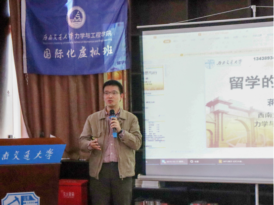 为了让更多有想法同学深入了解与本专业留学相关知识,力学与工程学院10月17日下午在机车博物园举办了“力行世界”留学沙龙第二期活动。本次活动由校战略规划处副处长、力学与工程学院教授蒋晗主讲,活动青年志愿者协会承办。