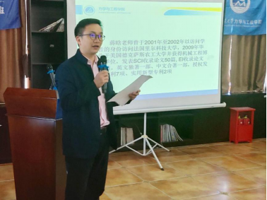 随后,孔祥彬老师向到场同学们介绍了本次活动的主讲人蒋晗教授。蒋晗教授有着丰富的留学经历,2001年至2002年以访问学者的身份访问法国里尔科技大学,2009年毕业于美国德州农工大学获得机械工程博士学位,发表SCI收录论文五十余篇、EI收录论文八十三篇,授权发明专利7项、实用新型专利2项,有英文独著一部、中文合著一部。