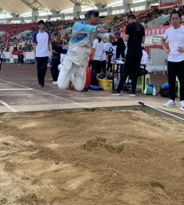 学生组的比赛中,力学学子展现了热血拼搏的青春活力。2020级工力1班周魁远同学以超出第二名体特生近一米的优异成绩取得了男子乙组立定三级跳冠军。经过同学们的奋力拼搏,学生组晋级乙组团体八强,并获评最佳组织奖。