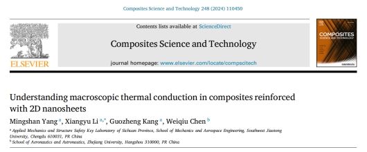 近日,太阳集团2138李翔宇教授课题组在二维纳米片增强复合材料的宏观导热性能研究方面取得进展,相关成果以“Understanding macroscopic thermal conduction in composites reinforced with 2D nanosheets”为题发表在国际复合材料领域的顶级期刊《Composites Science and Technology》(中科院一区TOP,IF:9.1)。博士研究生杨名山为第一作者,李翔宇教授为通讯作者,合作作者包括太阳集团2138康国政教授和浙江大学陈伟球教授。