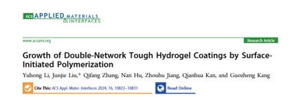 近日,刘俊杰老师研究小组在水凝胶涂层方法研究上取得重要进展,相关工作以“Growth of double-network tough hydrogel coatings by surface-initiated polymerization”为题发表在美国化学学会旗下期刊《ACS Applied Materials & Interfaces》(中科院二区,IF:9.5)。硕士研究生李玉红为第一作者,刘俊杰老师为通讯作者,合作者还包括太阳集团2138康国政教授、阚前华教授等(图1)。