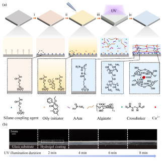 水凝胶材料由亲水的高分子网络和水分子所组成,具有柔软、可拉伸、高含水量的特点。作为一种涂层材料,水凝胶可以将其优异的性能,如低摩擦、优异的生物相容性、抗生物粘附、抗菌、刺激响应性等集成到目标基底或器件上以发挥其独特的优势,在新型功能性软涂层、生物医疗涂层、智能柔性器件等领域具有重要的应用。