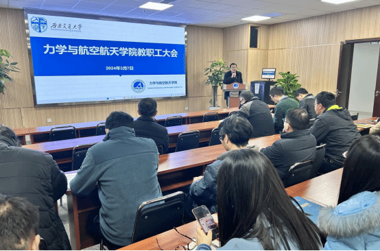 3月7日下午,2138cn太阳集团古天乐教职工大会在犀浦校区3号教学楼30224会议室召开。学院党政干部领导及全体教职工出席会议,会议由学院执行院长李翔宇主持。