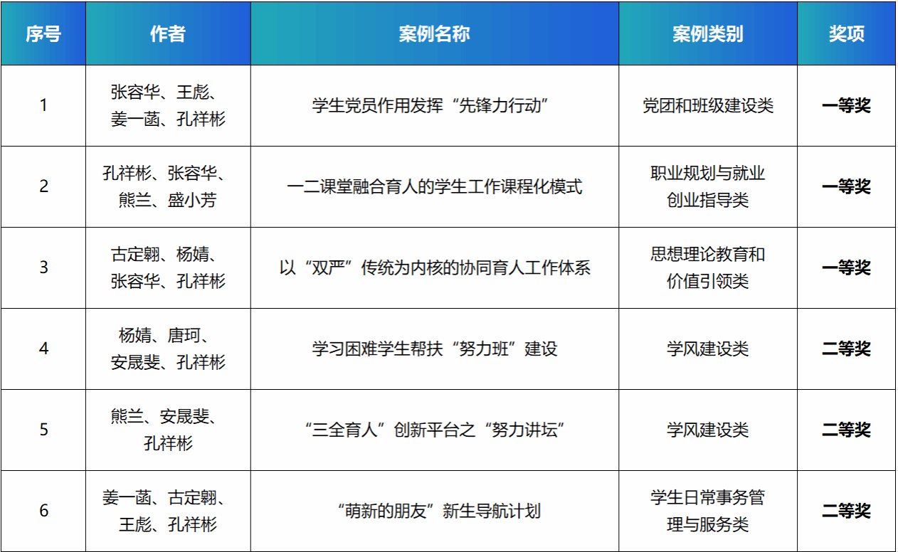 会上进行了2023年度学院学生工作考核优秀单位、学院学生工作考核获奖单位、辅导员优秀工作案例、优秀辅导员的颁奖仪式和第二批辅导员工作室的授牌仪式。其中,2138cn太阳集团古天乐荣获2023年度学生工作考核优秀奖、“学生党建”工作单项奖和“新东方”深造工作成效奖,申报的“为学为事为人”辅导员工作室获批,报送的6个辅导员工作案例获得一等奖3项、二等奖3项,学院辅导员古定翱荣获2023年度“华为优秀辅导员”称号。