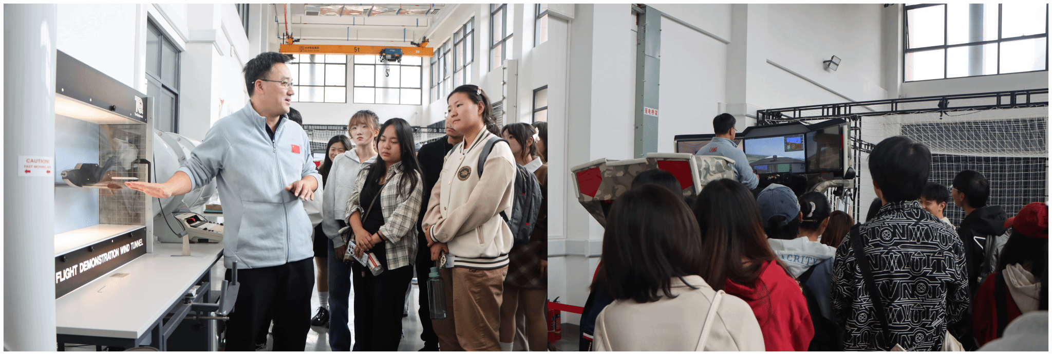 第四个展区设在力航学院飞行器工程试验中心,协会邀请学院试验中心范晨光副教授介绍试验中心,并指导同学们亲自操作六自由度飞行模拟驾驶器,逼真地复现飞机在空中的飞行状态和环境。活动让同学们体验飞行的乐趣,了解航空文化,感受航空科技的神奇和美好。