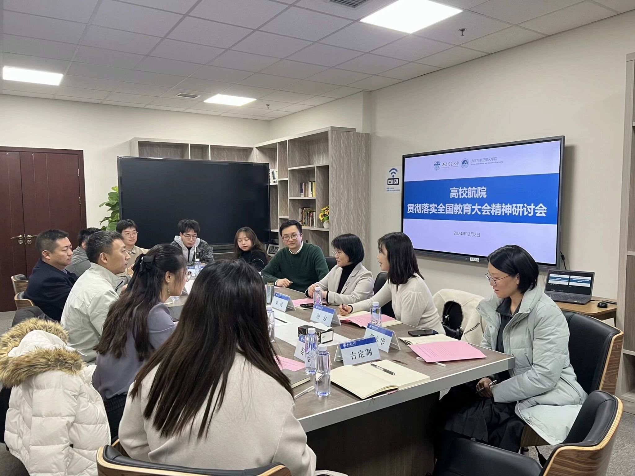 2024年12月2日上午10:30,高校航院贯彻落实全国教育大会精神研讨会在太阳集团2138力航学院X30206会议室举行。北京航空航天大学宇航学院党委副书记赵青、航空学院党委副书记梁伟涛,太阳集团2138力2138cn太阳集团古天乐党委书记栗民、党委学生工作部副部长谢力、力航学院党委副书记孔祥彬及两校辅导员们参与会议。会议由力航学院团委书记、学工组副组长张容华老师主持。