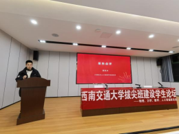 物理2022级拔尖班班长龙园杰同学为我们带来题为“学思践悟,知行合一——物理拔尖班的成长之路”主题报告,展现了班级同学在党建、学风、科创、社会实践方面“多点开花,全面结果”的“追星之路”。