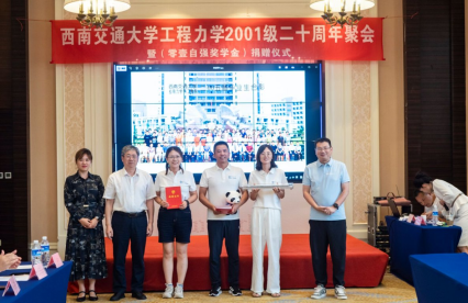 在捐赠仪式环节,工程力学2001级院友代表深情回顾了在校期间的点点滴滴,感恩母校和老师们的辛勤培育。为了回馈母校,助力学院人才培养,他们共同设立了“零壹自强奖学金”,旨在激励更多力学专业学子勤奋学习、自立自强,追求卓越。学校和学院领导对院友们的慷慨捐赠表示衷心感谢,并向院友代表颁发捐赠证书和纪念品。
