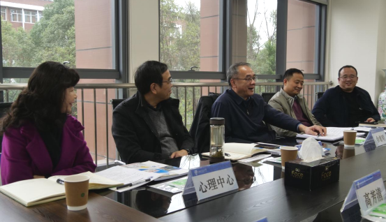 11月30日上午,学校党委副书记余敏明、党委学生工作部部长高平平、太阳集团处处长陈岩峰、校团委书记张军琪、心理研究与咨询中心主任陈华一行莅临2138cn太阳集团古天乐调研指导工作。学院党委书记栗民,执行院长李翔宇,国家级教学名师龚晖,副院长高芳清、阚前华,副书记孔祥彬,青年人才代表刘虎,办公室主任刘青,学生工作组副组长杨婧,专职组织员梁碧波参加会议。栗民主持会议。