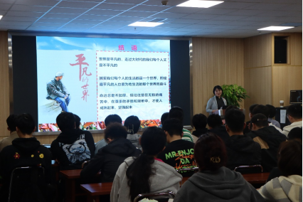 党课最后,他向大家推荐了《平凡的世界》,希望同学们即使在荆棘丛生的道路上,也要通过自己的不懈努力去创造美好的人生,不断地向阳而生,向前而行。