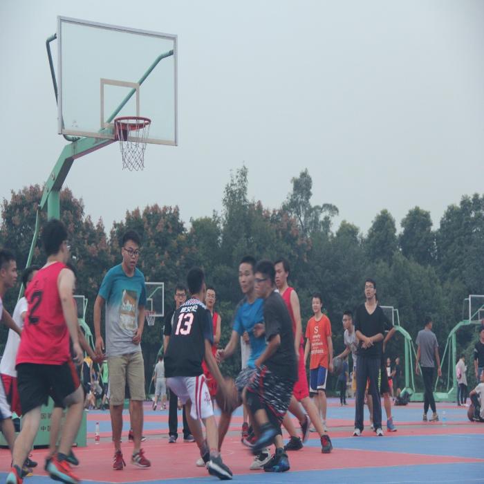 夜色渐浓,太阳快要落下山头。篮球场上工力4班的新生们正准备着与14级学长们的对弈。9月21日下午6:10,比赛正式开始。