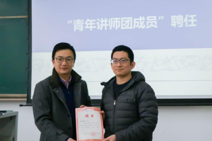在留学沙龙讲座之前,举行了学院“青年讲师团”聘任仪式,学院党委副书记孔祥彬老师为刘牧远老师颁发了聘书。