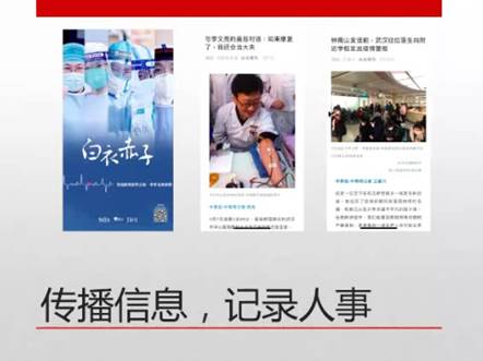 在讲座中,王鑫昕讲述了去武汉的历程、在武汉的工作情况,他表示媒体的职责在于传播信息、记录人事,关注人性、传递信心。在武汉的45天,他们报道了舍身忘我抗击疫情的医护人员、国家的积极作为,记录了大国的力量与微小的感动,传递了众志成城、共克时艰,抗疫全面胜利必胜的信心。