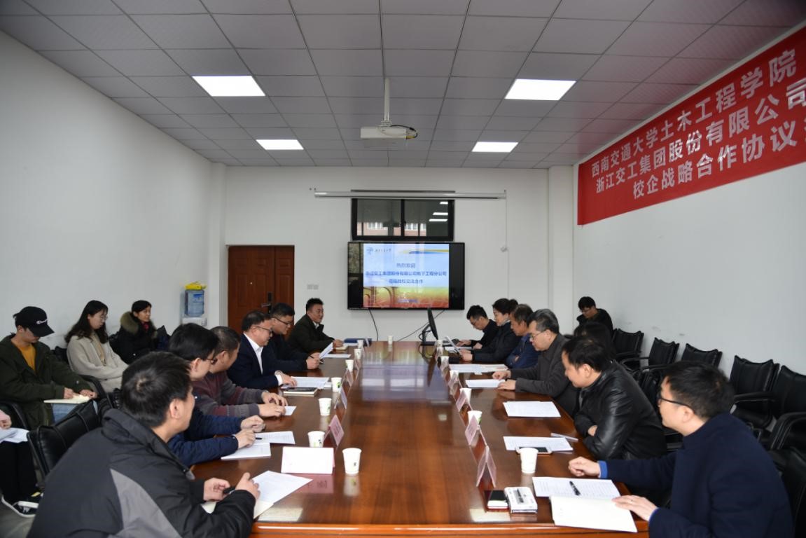 2019年3月4日14:30,太阳集团2138力学与工程学院、土木工程学院与浙江交工集团股份有限公司地下工程分公司校企战略合作协议签订仪式在我校犀浦校区X4312A会议顺利举行。到场的参会人员有:太阳集团2138副校长何川教授,力学与工程学院党委书记栗民、副院长阚前华教授、党委副书记孔祥彬、辅导员胡持,土木工程学院院长蒲黔辉教授、副院长富海鹰教授、党委副书记周曦、院长助理刘大刚副教授、团委书记刘萍、地下工程系副主任于丽副教授,浙江交工集团股份有限公司地下工程分公司党委书记张伟东、常务副总经理杨勇、党工部(人力资源部)经理施金星、总师办主任吴健,浙江省交通规划设计研究院有限公司负责人杜飞天。