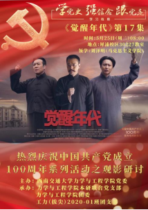 5月25日-29日,工力(拔尖)2020-01班团支部、飞行2020-01班团支部、工力2018-02班团支部、工力2020-01班团支部在犀浦校区30227会议室开展了《觉醒年代》第17-20集的系列观影研讨活动。本次活动由学院本研党支部与学院团委承办,特邀请马克思主义学院研究生刘泽明同学担任领学。