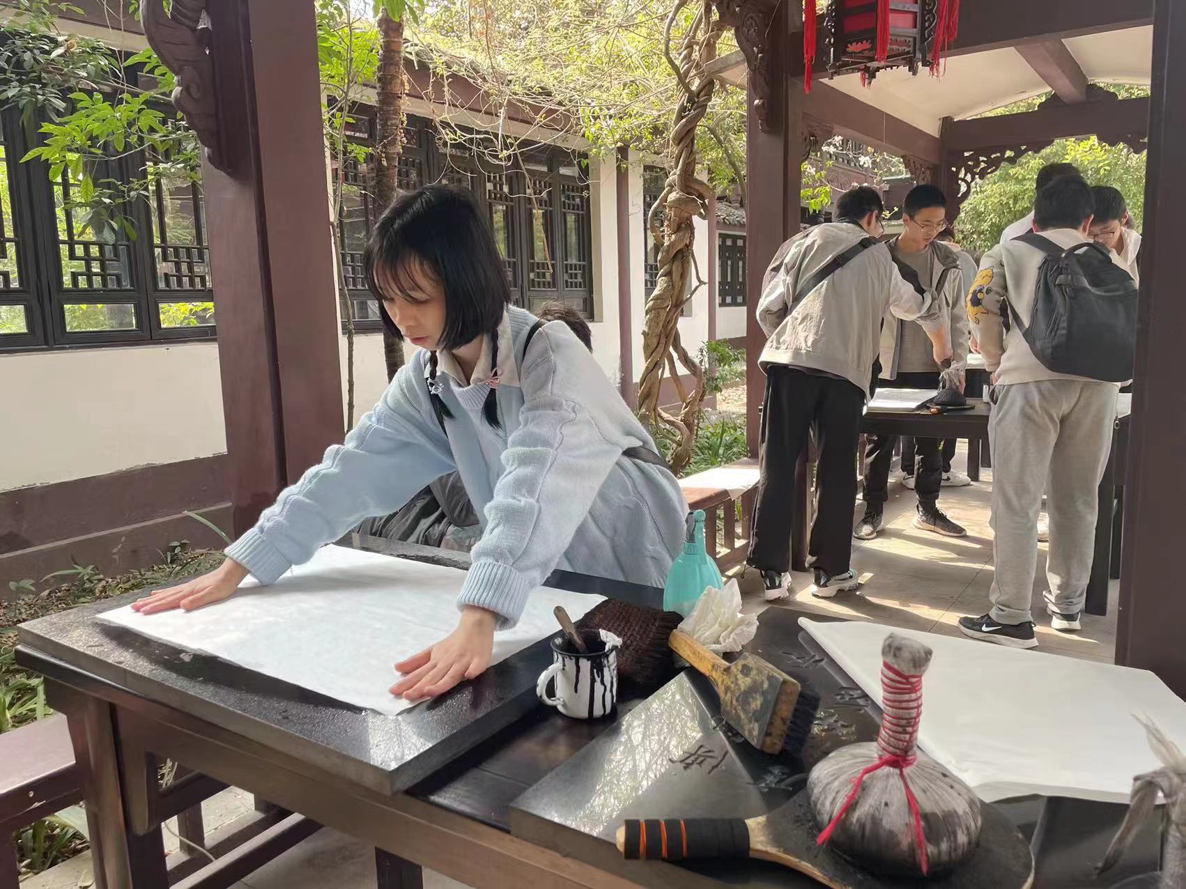 第二站是眉山三苏祠,支部党员们参观了富有四川特色的古典园林建筑,聆听了“三苏”家风家训、文化精髓以及廉政为民的相关事迹,学习了习近平总书记视察三苏祠时有关家风建设的重要论述。最后,支部党员们还体验了三苏祠碑廊拓印技艺,通过亲手从石碑上拓印下“三苏”诗句,深层次感受了中华传统文化之美。
