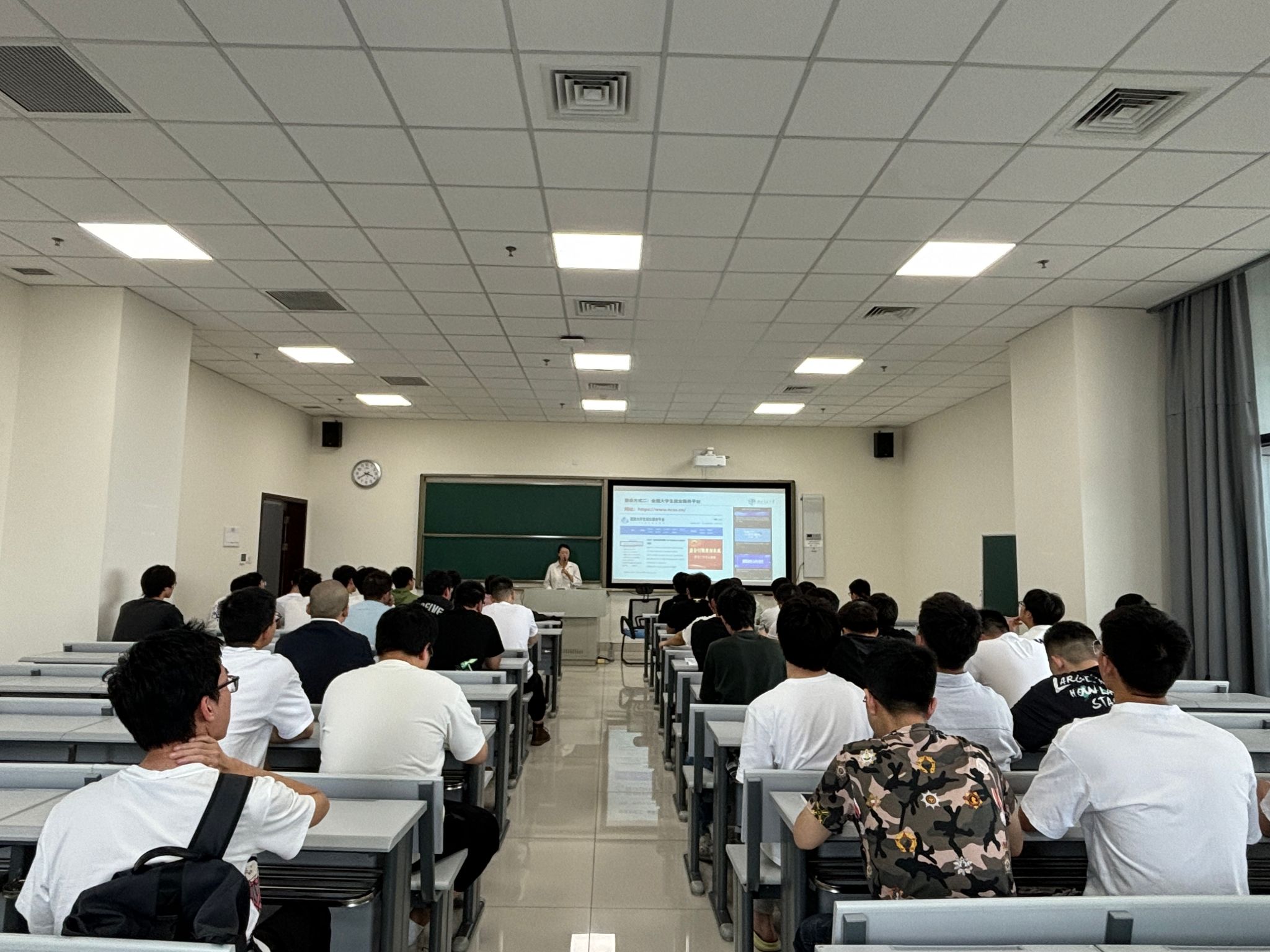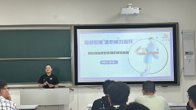 在职业目标的选择上,易洺瑶老师从宏观经济发展趋势和微观考公考研人数变化出发,结合往届学长学姐的就业经验,详细分析了不同城市和企业的就业前景。她为同学们描绘了一幅广阔的职业蓝图,鼓励大家深入思考自己的兴趣、优势与市场需求,从而明确未来职业方向。