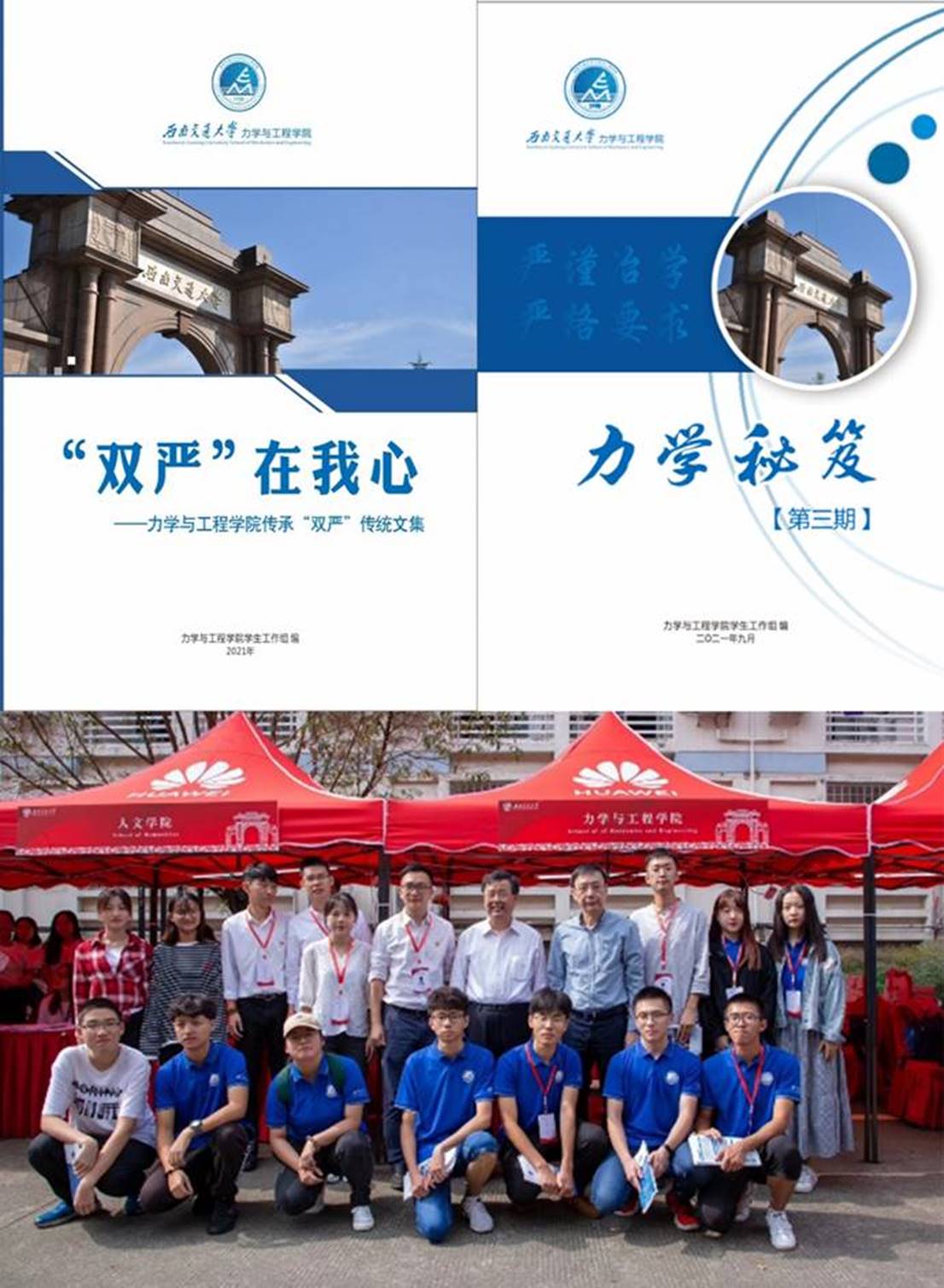 持续推进“三全育人”,承办学校第二届“我身边的双严故事”征文活动,编写《双严在我心》文集,举办学校第二届基础力学优秀笔记作业评选、第二届“笔记也穿越”孙训方先生讲义与交大学子作业笔记联展,编写课程学习心得《力学秘笈》第三期,运行学业帮扶“努力班”第三、四期。主办了2021年高校航院“三全育人”工作论坛和第一届川渝高校航院班团建设论坛,被教育部高校思政网报道。