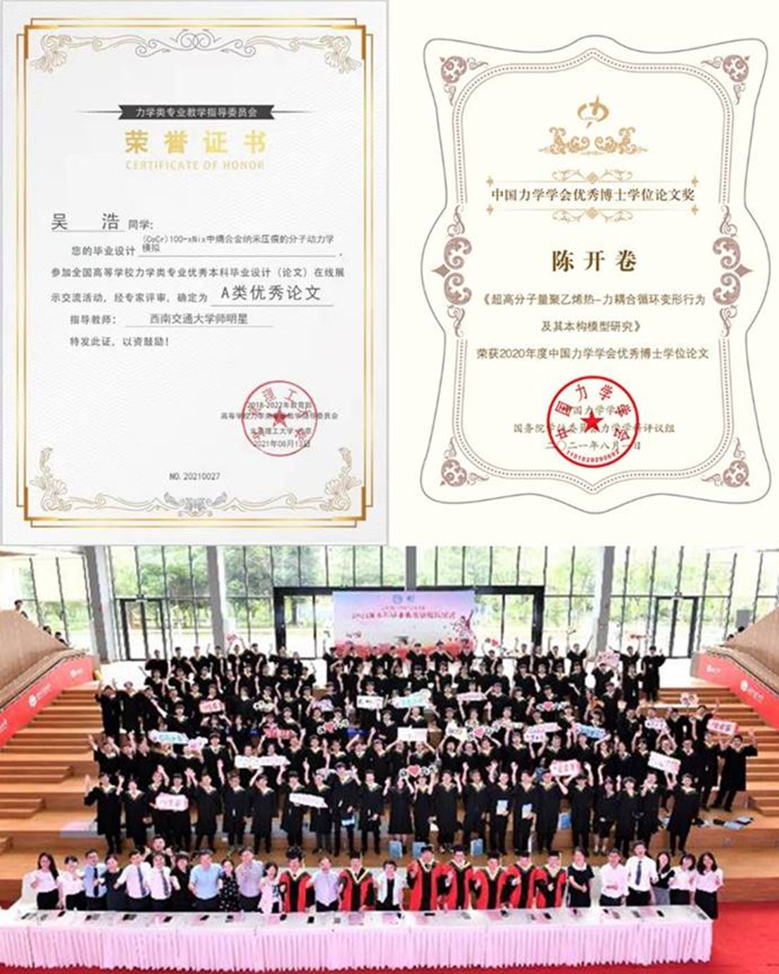 确保全校力学基础课程的正常教学、工程力学专业继续夯实国家级一流专业建设、3门课程被评为全国一流课程,成功开设第三届工程力学拔尖班、承担了多个国家级和省级教育教学改革项目,1项成果入选四川省教学成果特等奖、1项成果入选四川省教学成果一等奖。申报、获批教改项目20项,出版教材、专著3部。